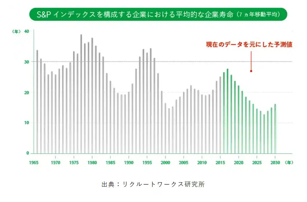 その結果、以前は1つの事業の寿命が20~30年と言われていたものが現在では3~7年と言われています。このような時代になると社員が育つよりも早く会社が消滅する可能性の方が高くなります。